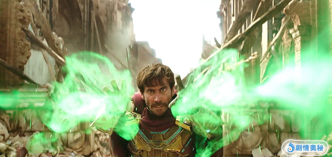 神秘客来自多元宇宙的地球-833,一出场就自带特效,上天下水独战水元素,绿色光雾的炫丽能量攻击,让看电视回放的蜘蛛侠同学们吐槽“他就像穿着钢铁侠盔甲的雷神索尔”。此时蜘蛛侠并没有做好承担拯救世界重任的准备,但“神秘客”似乎对小蜘蛛寄予厚望,一边与小蜘蛛并肩作战,一边引导小蜘蛛想清楚自己要成为什么样的人。