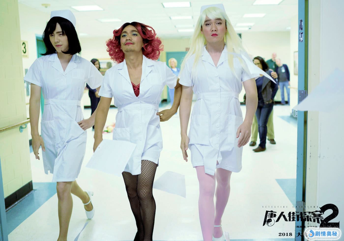 此前其实刘昊然也曾尝试过长发造型,大家印象比较深的,应该就是2018年《唐人街探案2》里,他跟王宝强、肖央一起反串女性的那一幕了,只不过那个更有喜感而已。