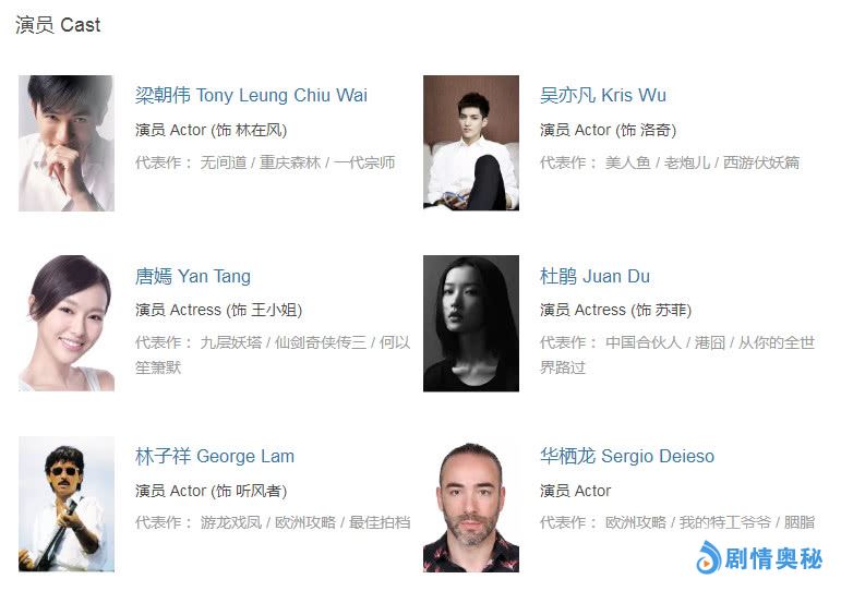 《欧洲攻略》阵容相当豪华,不止影帝梁朝伟,吴亦凡、杜鹃、唐嫣等人气偶像以及林子祥、元秋、刘家勇等老戏骨出演,主要演员涵盖老中青三代