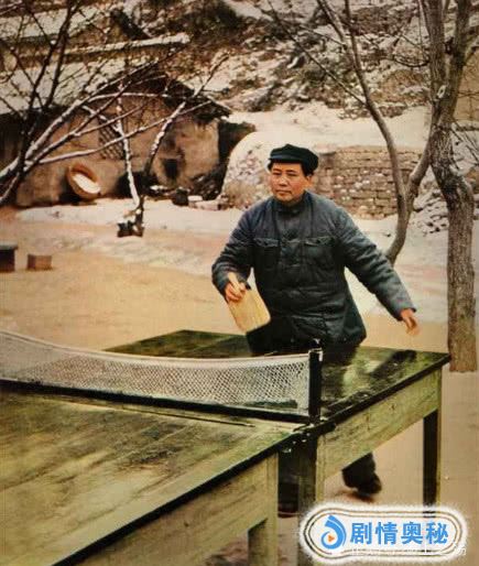 1947年,毛主席在工作之余,在简陋的条件下打乒乓球。