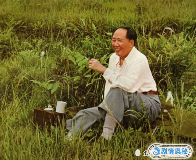 1954年,毛主席在杭州视察,坐在草地上喝茶。