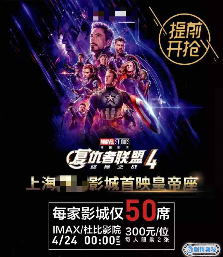 - 300块钱一张电影票?《复联4》人气高涨,影城出售“皇帝位”
