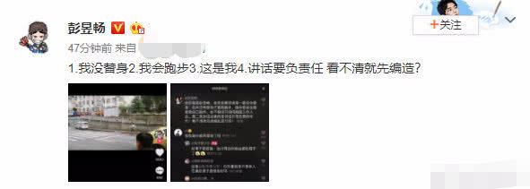 - 彭昱畅否认用替身跑步,回应称:会对我的观众粉丝负责
