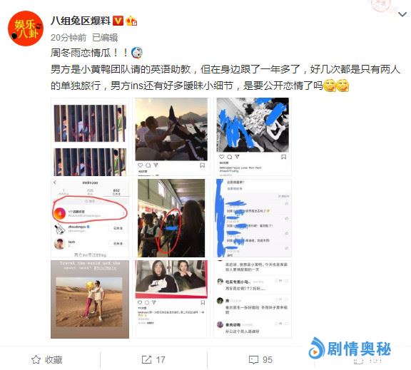 - 周冬雨疑与英语助教恋爱,男方ins晒两人旅游合照