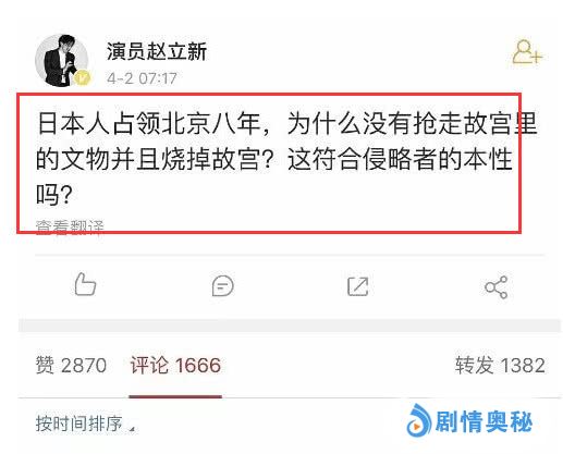 - 演员赵立新洗白日本人,秒删微博,反邪教官博和紫光阁发文批判