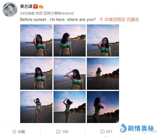 - 娄艺潇漫步巴厘岛沙滩,穿绿色比基尼露肋骨,大腿有淤青伤疤