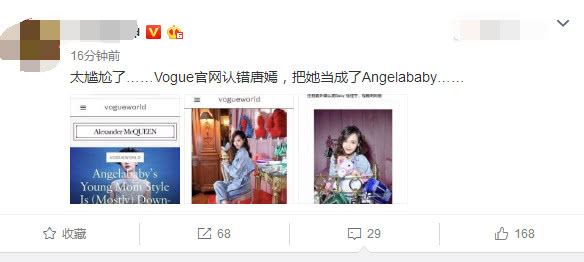 - Vogue官网认错Baby,把唐嫣当成了Baby,又脸盲了