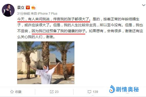 - 袁立发声辟谣生子传闻:至今没生孩子,已经预备健康卵子
