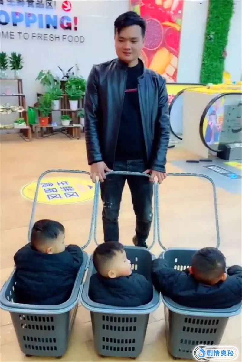 - 带着三胞胎去超市,爸爸这操作亮了,网友:太有才了