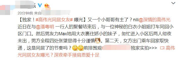 - 杨幂旗下艺人恋情曝光,高伟光带女友度过一夜,女方第二天才离开