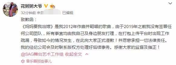 - 民谣歌手花粥被爆抄袭后致歉 未提抄袭 称是团队疏忽 你满意吗