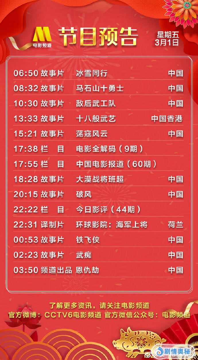 - 3月1日电影频道播出节目单!20:15彭于晏/崔始源《破风》