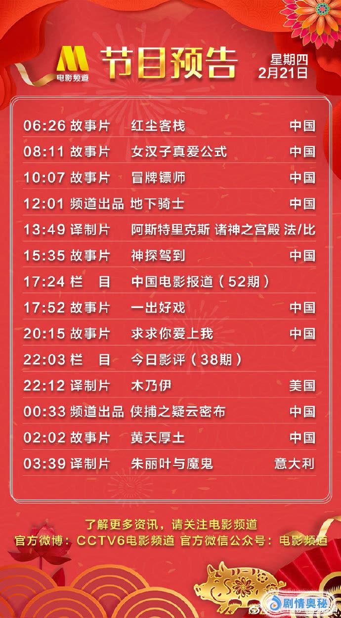 - 2月21日电影频道播出节目单!17:52 黄渤《一出好戏》