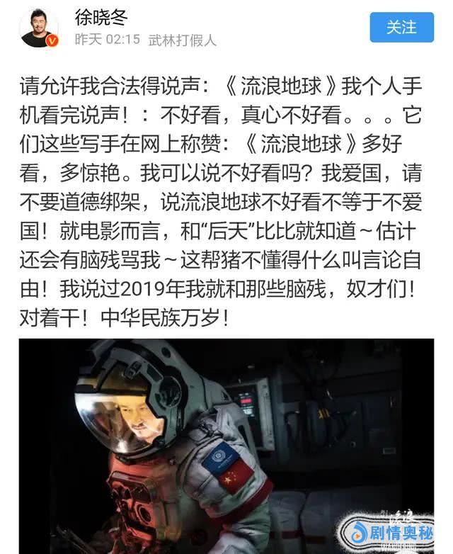 - 《流浪地球》票房狂轰40亿,却遭到徐晓东炮轰:“真心不好看”