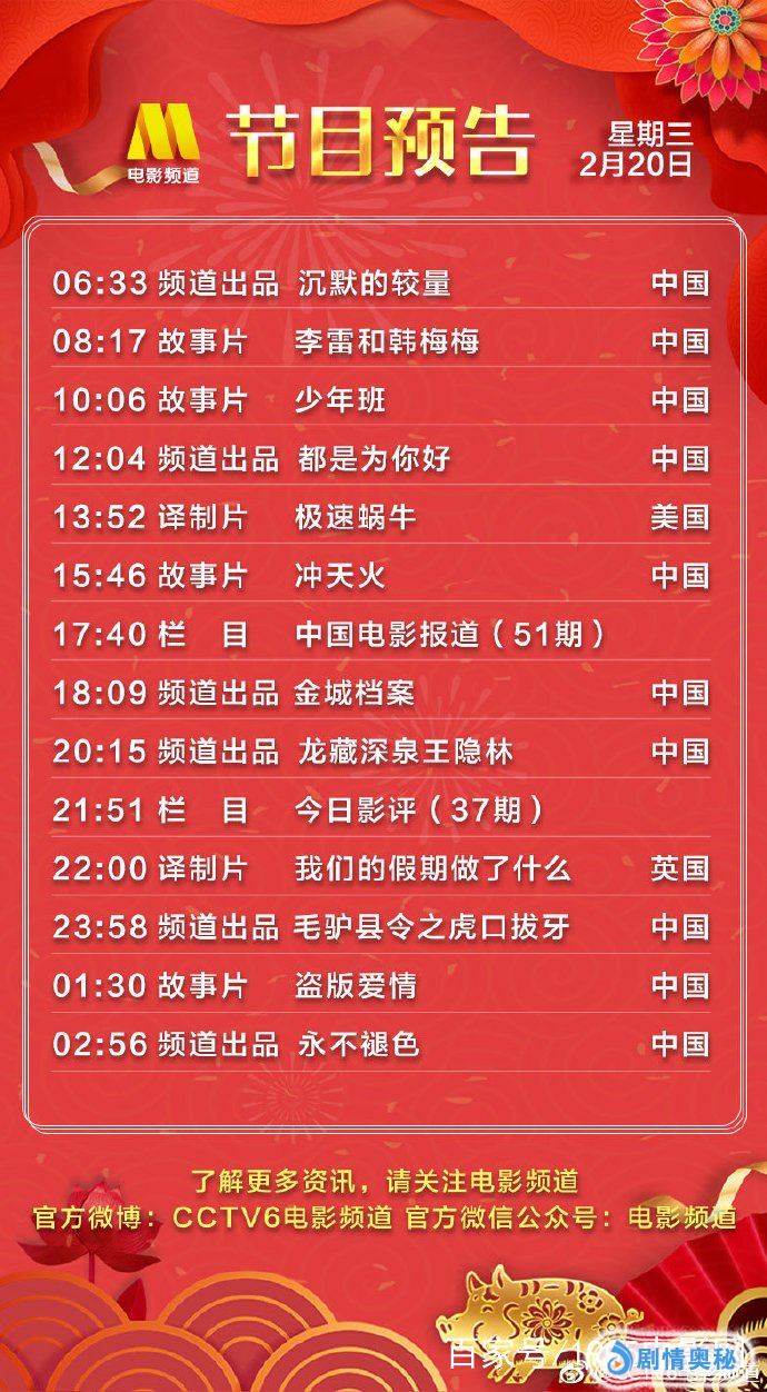 - 2月20日电影频道播出节目单!10:06 孙红雷《少年班》