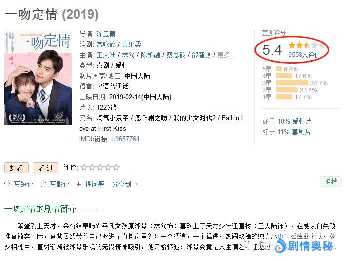 - 《一吻定情》豆瓣5.4,口碑扑街,网友:开年烂片,毁我青春
