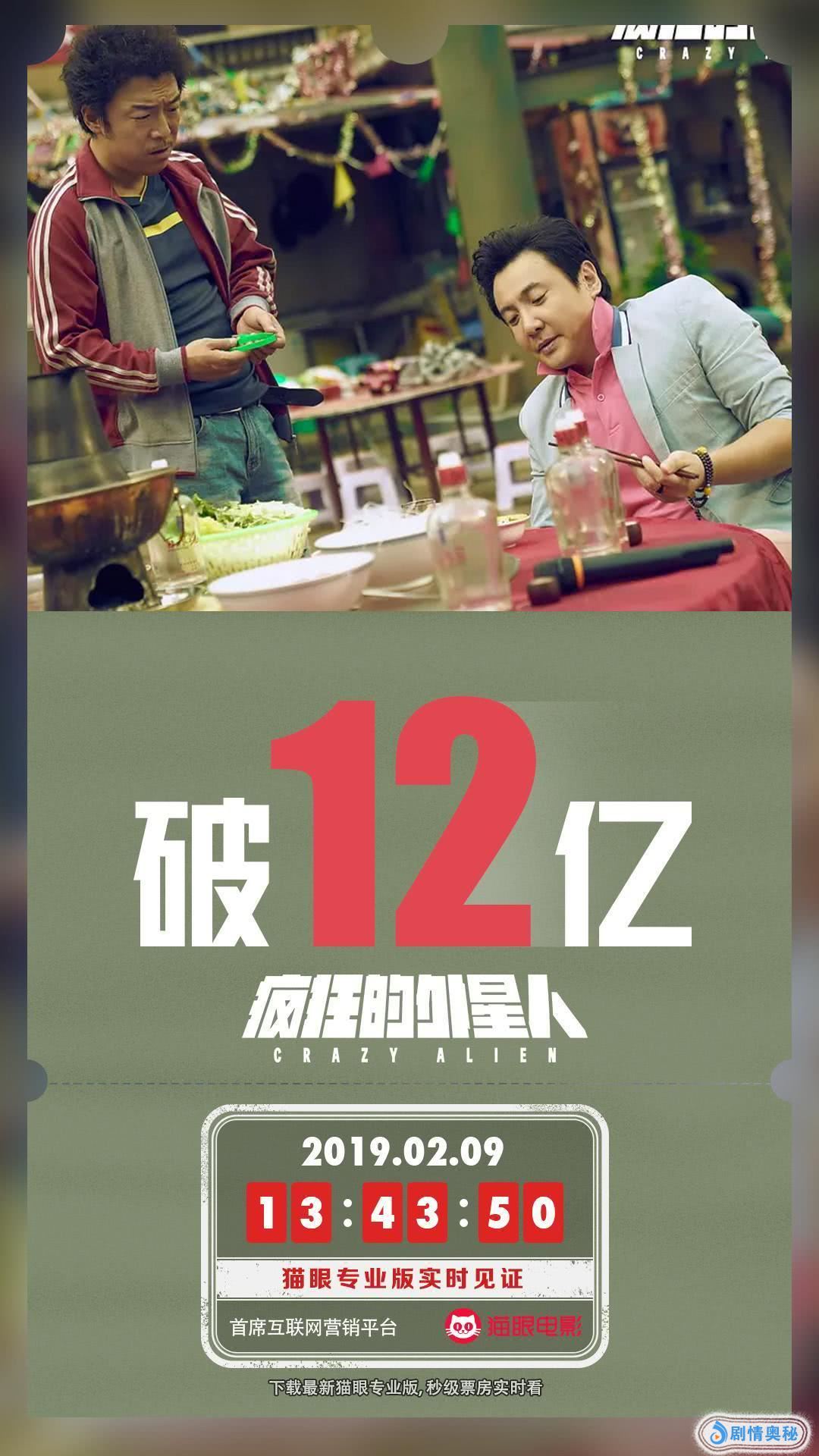 - 《疯狂的外星人》票房破12亿,黄渤沈腾个人票房已逼近100亿