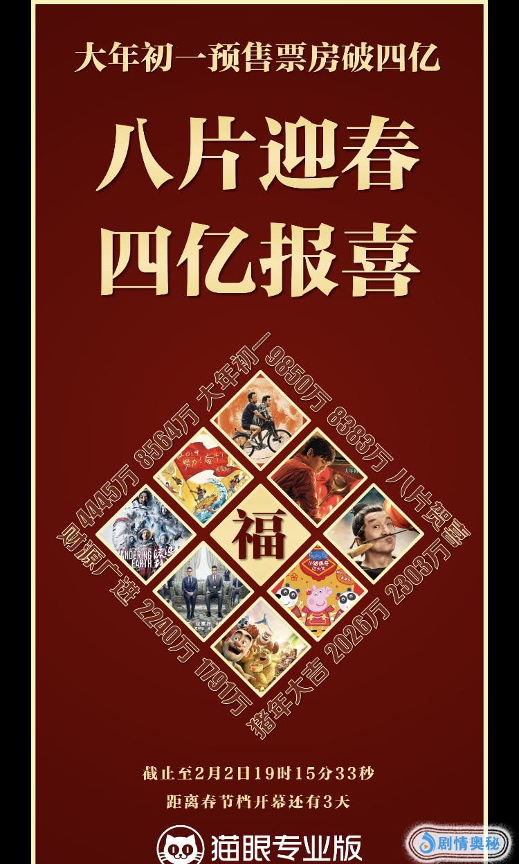 - 大年初一预售票房破4亿,史上竞争最激烈的春节档来了
