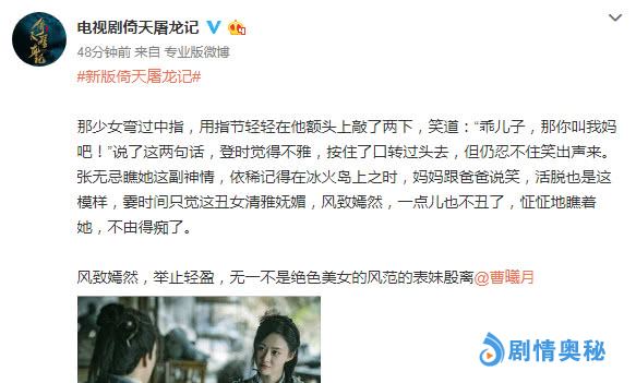 - 新《倚天》蛛儿剧照上线,不上色也不修图,官博被指“太偏心”!