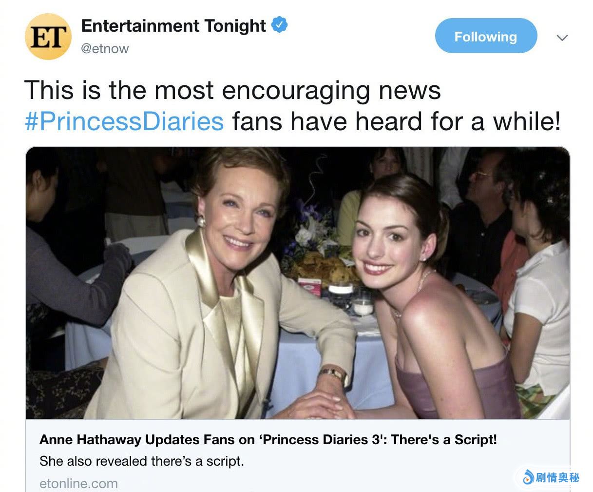 - 公主日记3即将开拍,安妮海瑟薇有望回归,网友:仙女颜值