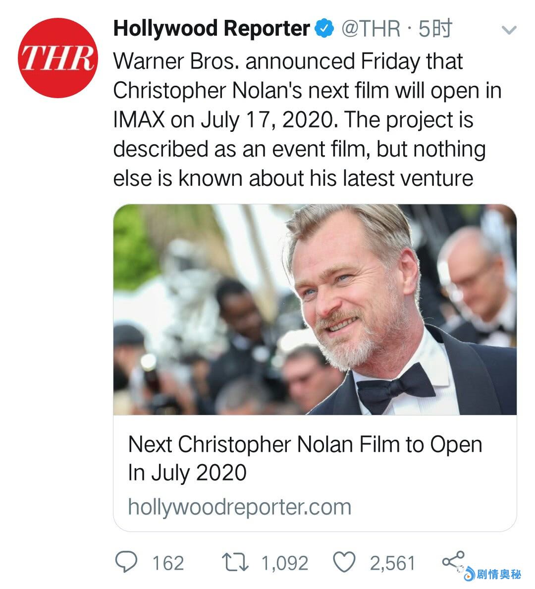 - 诺兰重磅新片定档,片名内容全保密,网友:肯定是神作