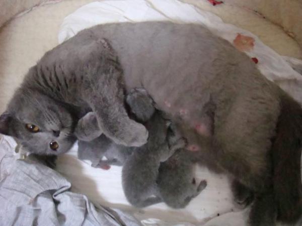 第二天早上一进办公楼,就见它喵喵的跑第一个人那使劲叫,把人领到大厅角落,才发现它果然是怀孕生了,生了四只可爱的小猫,昨天死活不走就是找地方要生宝宝了。这下楼里的人都兴奋了,大家给它准备箱子,铺上旧衣服做窝,给它倒满猫粮,牛奶,好生伺候它坐月子了。