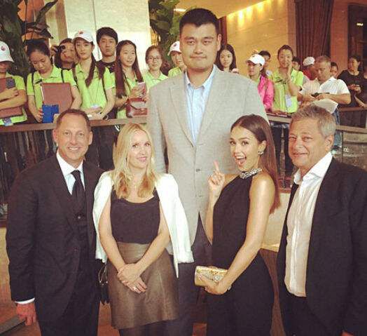 第二种办法就是很多人一起和姚明照相,这样姚明身边的朋友就不会显得那样矮小,大家看起来好像也变得正常了起来,看下面的图片,无论男女明星的身高在姚明面前都不再觉得奇怪。