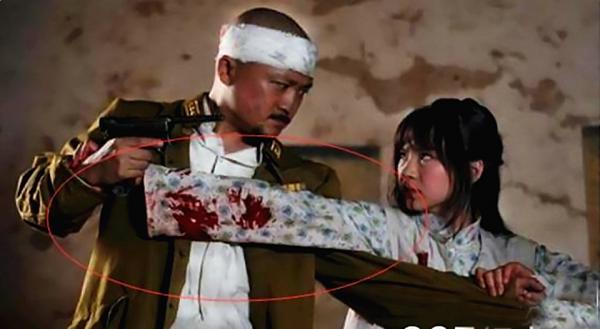接下来,我们再来看看一看这部抗日神剧,这个小姑娘仅仅在剧中一人力敌众鬼子,还把她们用葵花点穴手全部定住不说,在与这位敌人打斗的时候更是让大家为她捏一把汗,可是镜头转到这里的时候,画面就显得十分的诡异了。很明显的能看到小姑娘的手臂变长了,话说她是怎么做到的呢?难不成她除了会姚晨的葵花点穴手之外,还会另外一种神术?