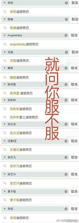 有一次,我被拉入一个“baby粉丝群”(里面还有一些鹿晗粉丝,可能是cp粉吧),因为习惯,我又加了很多粉丝为QQ好友,起初,我不怎么去看她们聊天,但有一次,我无意中看到,好多“baby粉丝”都在骂迪丽热巴,弄得我都不好意思,想脱粉,竟会觉得baby粉丝这么没素质,到了第二天,才发现,不是我们没素质,而是迪丽热巴粉丝没素质:第二天,群里有人说叫大家截图,我没敢截,就看着她们想干嘛,不过一会儿,呵!大多用baby照片做QQ头像的人全部换回迪丽热巴的,之后,就看见QQ兴趣圈里,空间里,甚至微博里都有……有baby粉丝骂迪丽热巴的QQ群截图!我呆了!再回QQ群中,除了一些cp粉,只剩下我是baby照片的头像了!我完全没有想到,迪丽热巴粉丝这么有心机,这么没素质,真的是,该有的没有,不该有的全都有!我退了群。几天后,我在空间中看见一位鹿晗的粉丝曝光了这个群,我私信她,她说:“我也不知道这个群是这样的,我也是被莫名拉入群里,她们这样真是太过分了!”实际上,我觉得,这已经不是过不过分的问题了,而是人品素质的问题了!