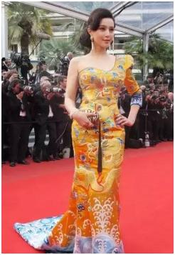 1997年,戛纳电影节50大庆,全世界最NB的导演和演员差不多全来了,巩俐是唯一一个在其中的中国演员(第一排右数第四个),还得到了时任法国总统希拉克的接见。所以说,巩俐才是戛纳的中国女王啊。不过这并不说明巩俐就没穿错过,比如这件中式服装,槽点满满啊。也是《2046》红毯,这件中国元素的旗袍,还是挺少数民族心态的,不知道这是不是启示了范冰冰的龙袍装。